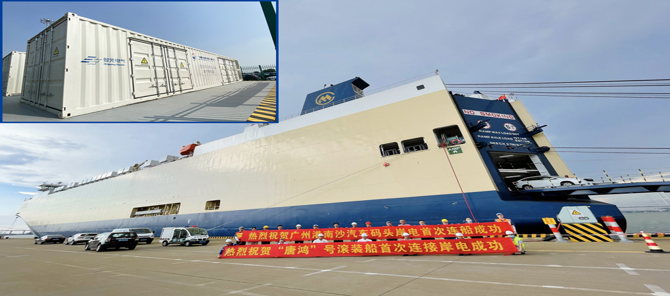项目概况 2021年,广州港南沙汽车码头使用一套智能高压岸电系统,采用6.6kV级高压船舶港口岸电系统,可根据船舶电网参数,调整供电频率和供电电压,设置系统输出电压和频率,使岸基电源与船舶发电机实现无冲击并网和负荷转移。