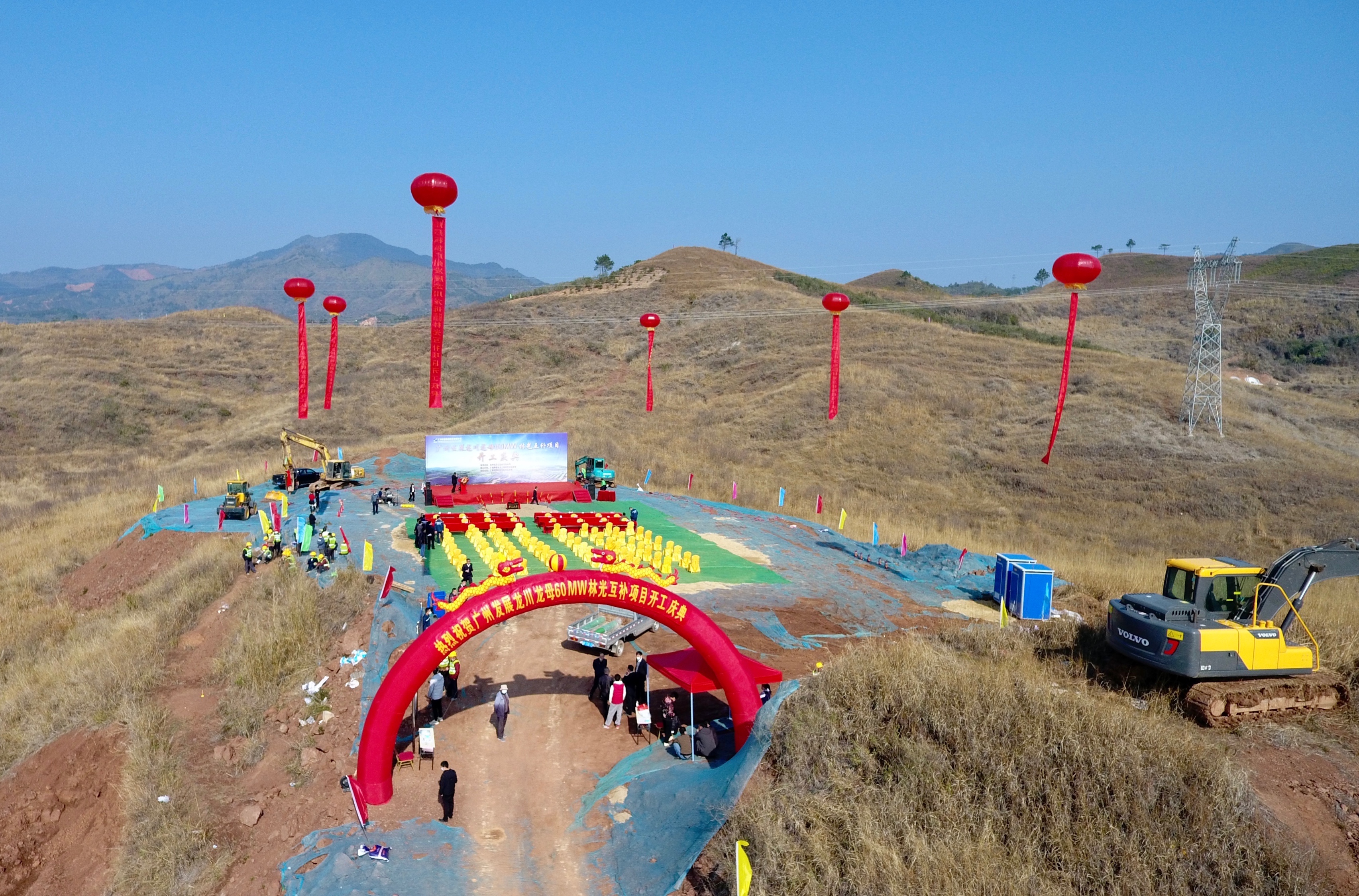 2月25日上午,广州发展龙川龙母60MW林光互补发电项目开工仪式在龙川县龙母镇举行。河源市龙川县委县政府、广州发展新能源股份有限公司(以下简称“广州发展新能源公司”)、广东天安项目管理公司及智光电气下属广州华跃电力工程设计有限公司(以下简称“华跃电力”)领导出席了项目开工仪式,并为项目奠基培土。